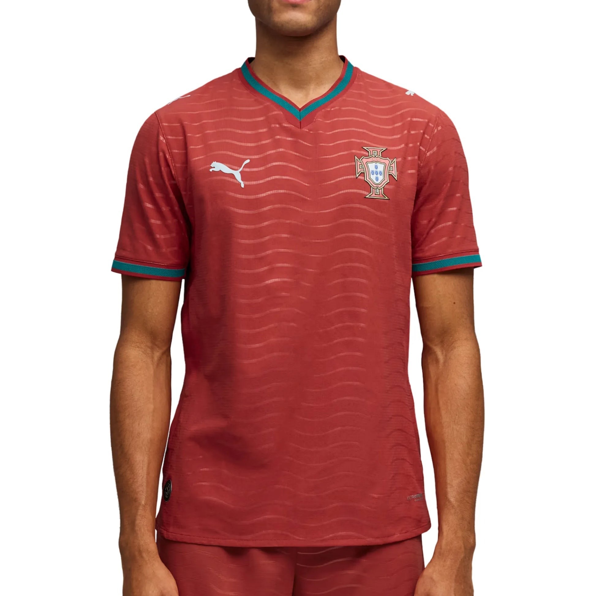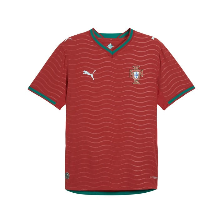 Portugal’s Home Kit channels the energy of the ocean and the intensity of a team ready to make waves on the biggest stage. The iconic red base is layered with a wavy pattern and green accents, a nod to the country’s maritime roots and fearless spirit. It’s a design that speaks to those who were born to explore and live to play por amor à camisola. The match-ready, Authentic version of the jersey is made with PUMA’s ULTRAWEAVE fabric and features an athletic fit for elite-level performance.