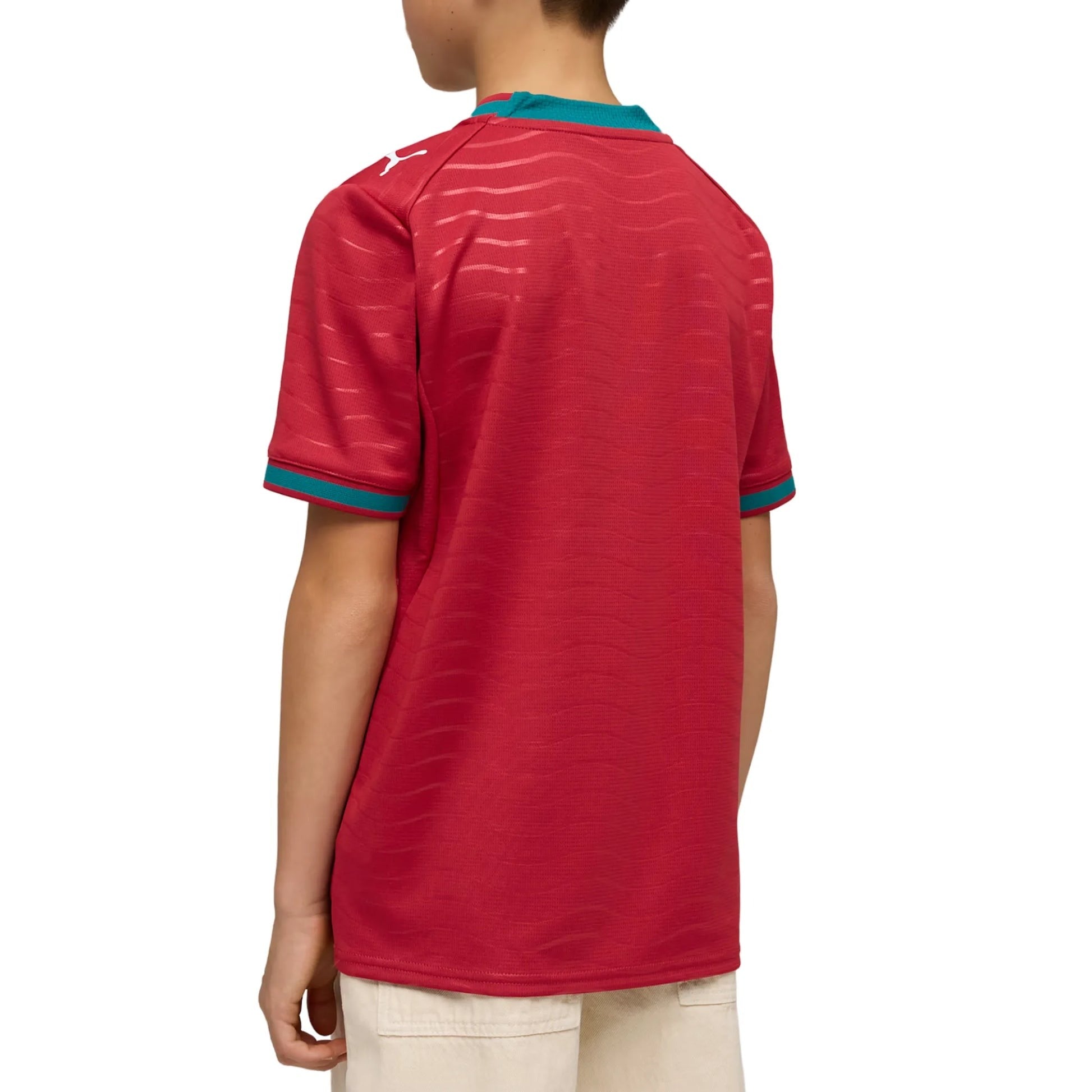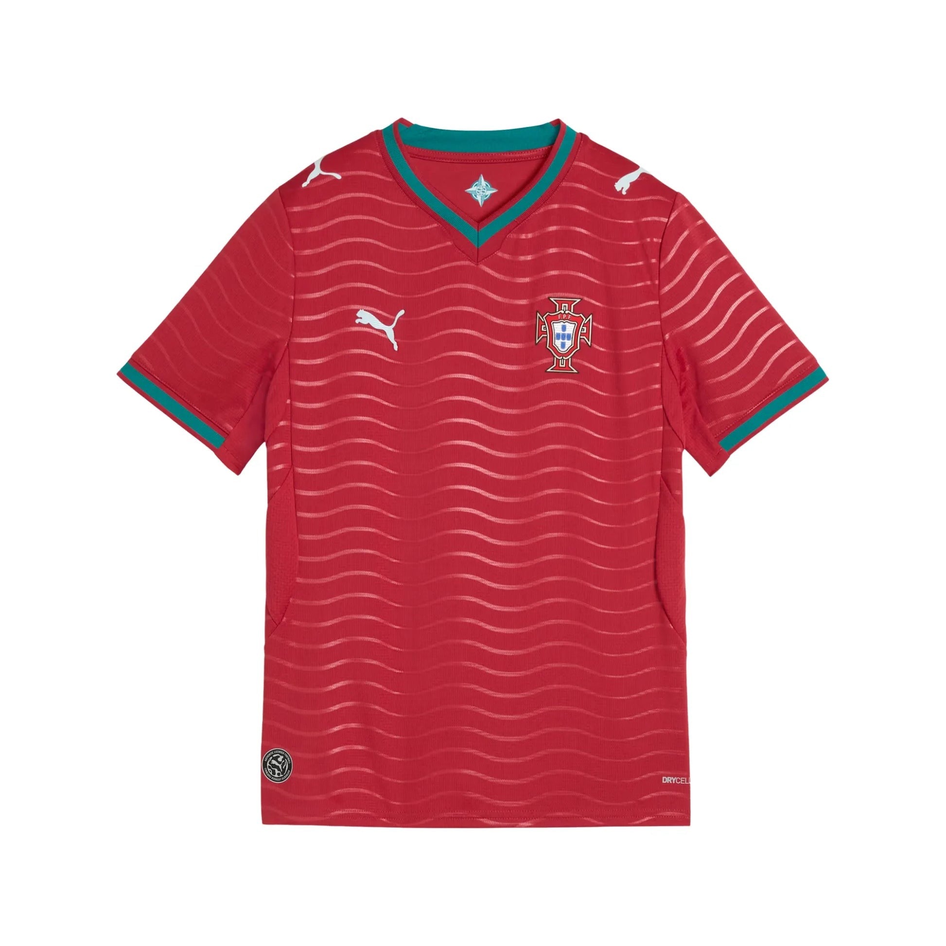 Portugal’s Home Kit channels the energy of the ocean and the intensity of a team ready to make waves on the biggest stage. The iconic red base is layered with a wavy pattern and green accents, a nod to the country’s maritime roots and fearless spirit. It’s a design that speaks to those who were born to explore and live to play por amor à camisola. Designed for the fans, this Replica jersey pairs the same match-worn look with a casual silhouette, details, and materials, ideal for both game day and everyday wear.
