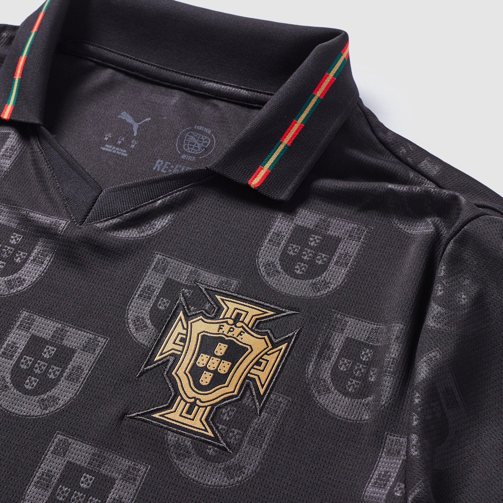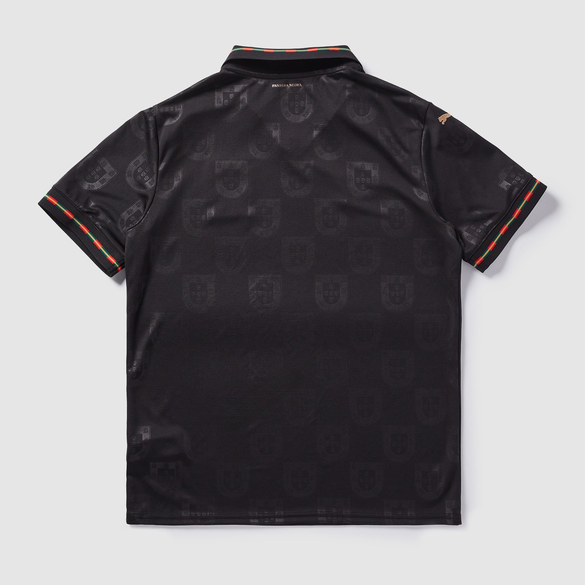 “O Rei” – the King. So good that PUMA made a boot just for him. Now, 60 years after he became the first Portuguese player to be crowned Europe’s best, they’ve created a luxurious black and gold collection to continue his legacy and inspire the next generation.Connecting today’s superstars with Portuguese football heritage, the shirt features the classic national team crest in a repeating allover graphic, while flag colour details adorn the collar and sleeve cuffs. At the back neck, a “Pantera Negra” signoff channels the spirit of the Black Panther.
