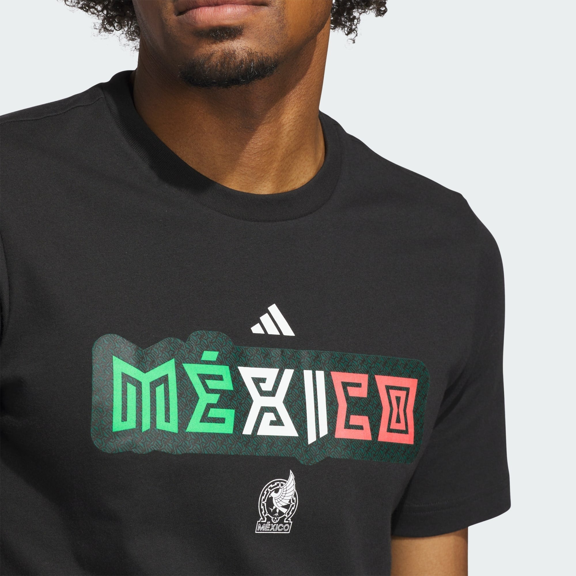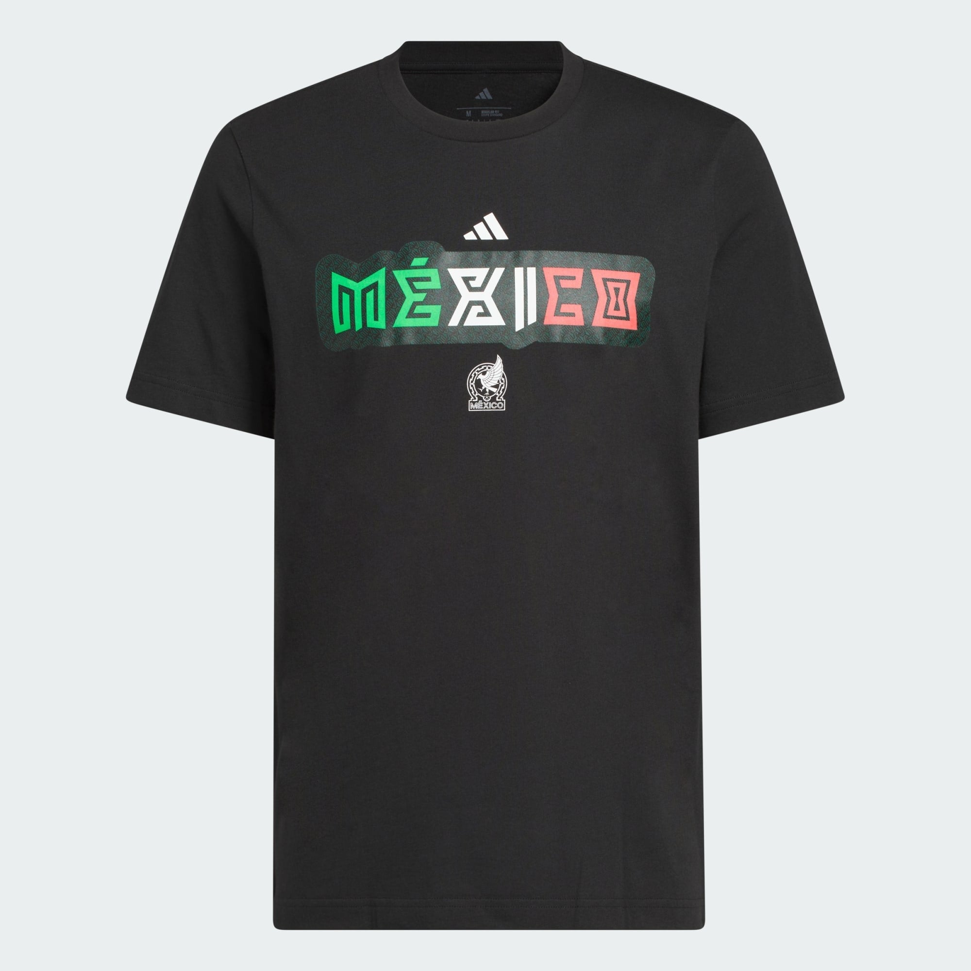 Celebrate the spirit of soccer with the World Cup 26 Mexico Home Graphic Tee. This tee is more than just a piece of clothing—it's a tribute to the passion and energy of the game. Crafted from soft, single jersey cotton, this piece offers a comfortable fit that feels great, whether you’re meeting up for a casual outing or cheering on Mexico in the World Cup. Designed with a regular fit, it provides a relaxed feel without compromising on style. The knit fabric provides breathability, making it great for warm days or layering under a jacket when the temperature drops. The bold Mexico graphic shows the world who you’re cheering for, while the adidas logo on the chest and on the left sleeve adds a touch of sporty flair. Whether you're watching the match or out with friends, this tee helps you stay stylish and comfortable. Embrace the game and show your support for Mexico with this iconic tee.