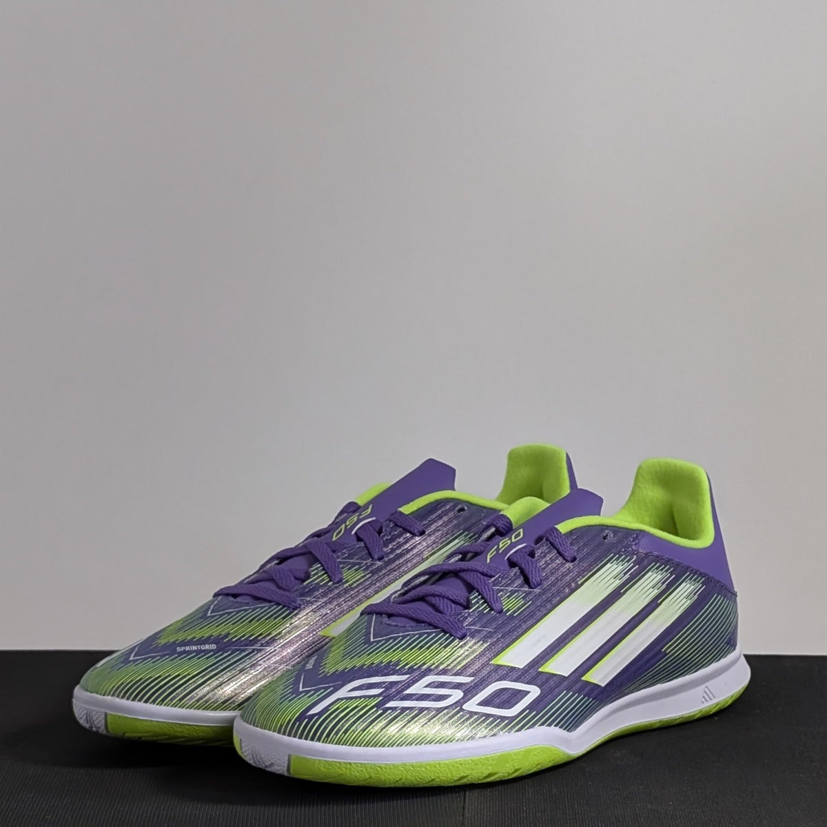 Find your fast to truly express yourself on the court. Feel the rush in adidas F50 boots engineered for speed. These Club football boots keep you comfortable on the move with a supportive Fiberskin upper and perforated tongue. Turn them over and you'll find a grippy rubber outsole that supports speedy play on flat indoor surfaces.